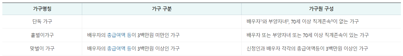 | 구분 | 대상자 | 신청대상 | 신청시기 | |