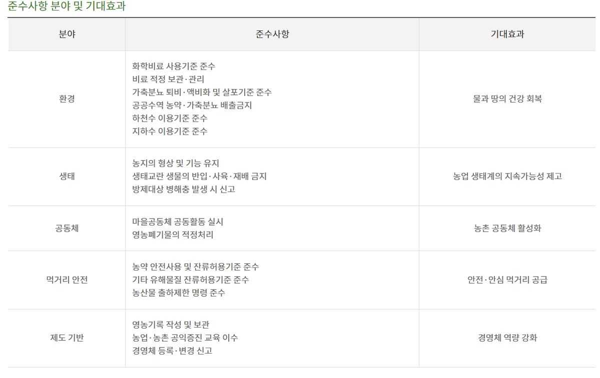 - 다만, 준수사항이 기존보다 확대됨에 따라, 현장의 여건과 농업인들의 준비기간 등을 감안하여 신규 도입되는 일부 준수사항은 그 활동 수준과 위반시 감액수준을 단계적으로 적용