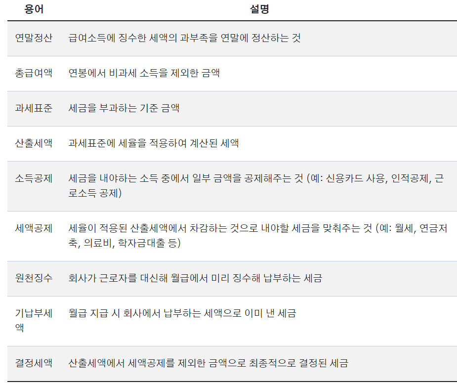연말정산 관련용어